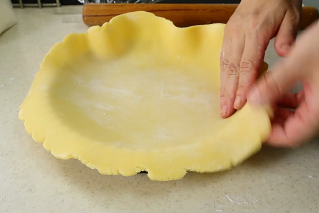 伸ばす工程まで終わっているので、あとは型に敷いて具を詰めたらすぐに焼くことができます。