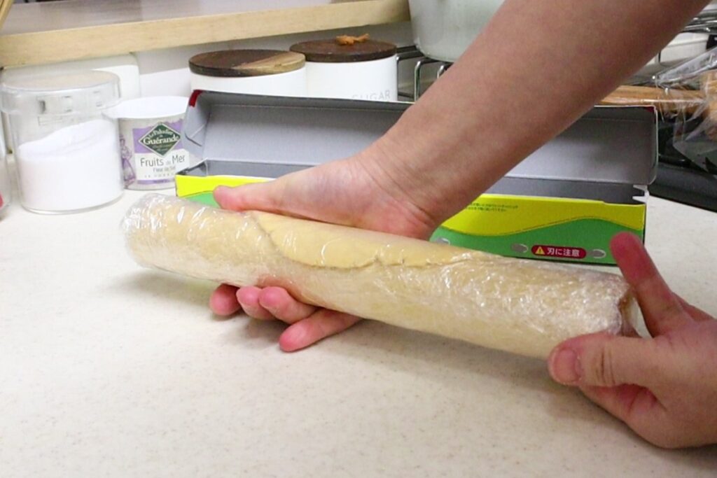 生地が冷え固まるまでラップの空き箱などに入れておくと、