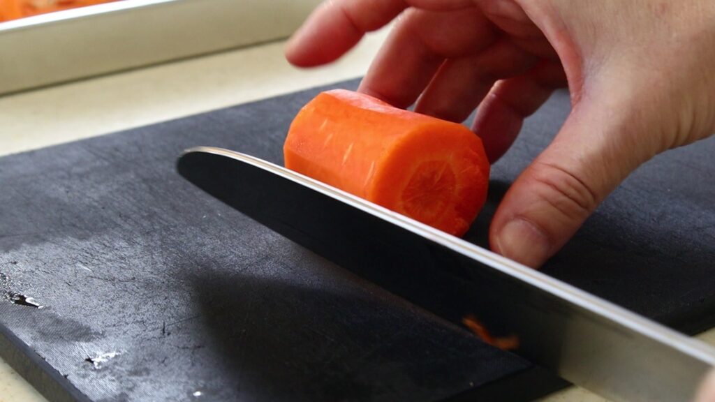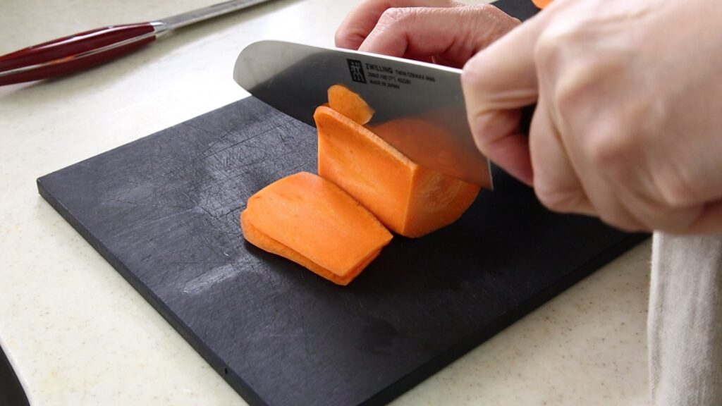 にんじんは丸みがあり、そのままでは切りづらいため、