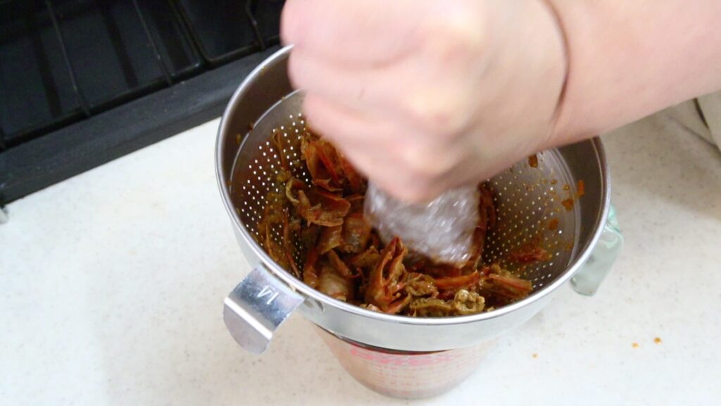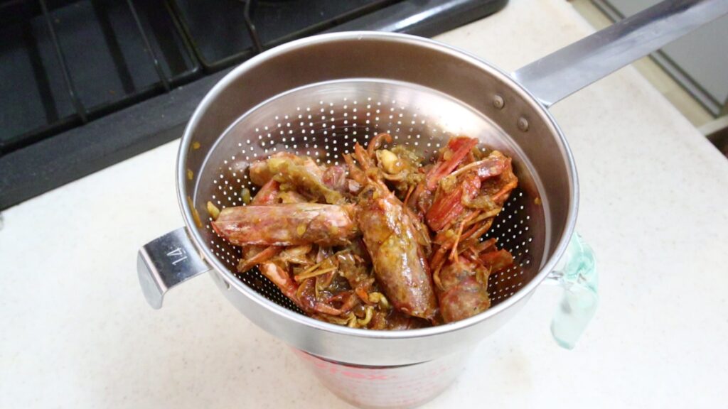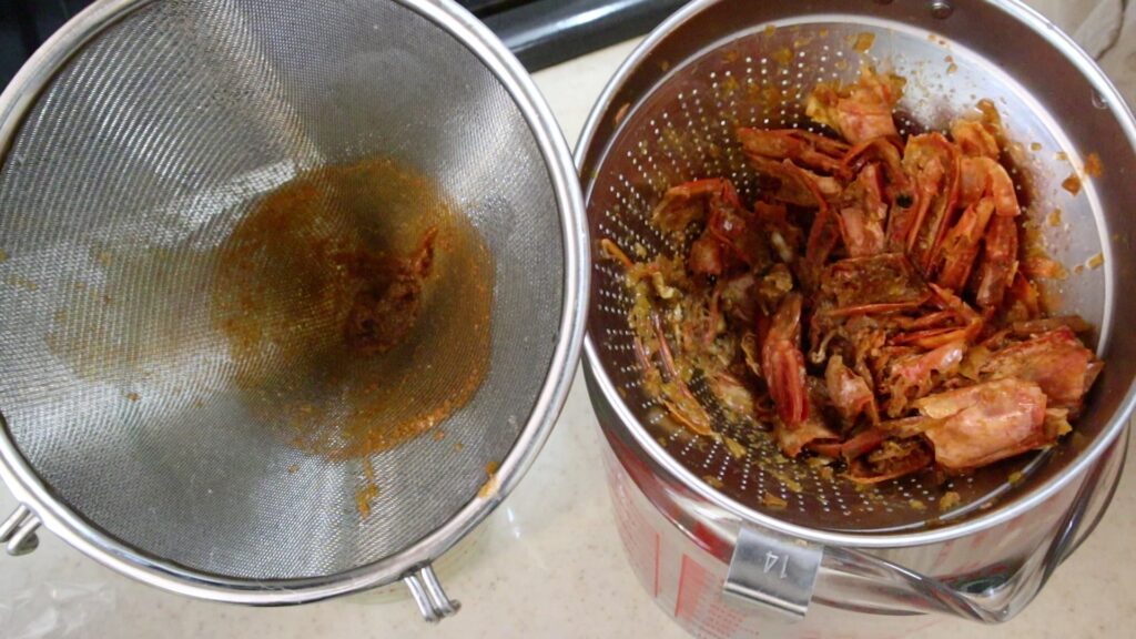 カニやエビの殻など、グッと力を入れて濾したい素材もしっかり濾すことができます。