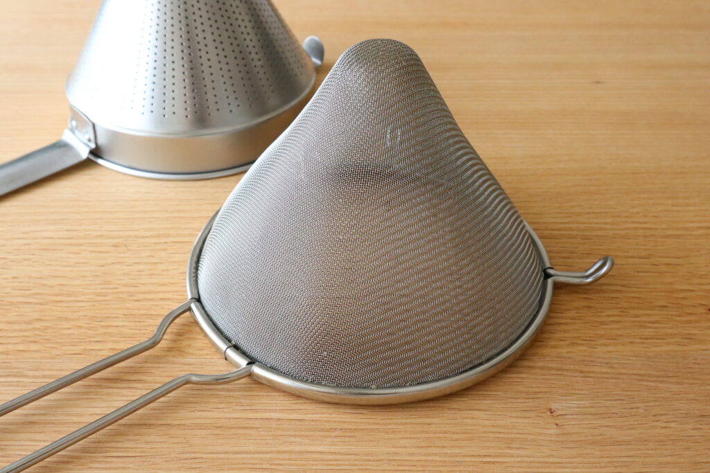 まずはパンチシノワで濾し、次にメッシュシノワで滑らかに仕上げる、という使い方をすることもあります。