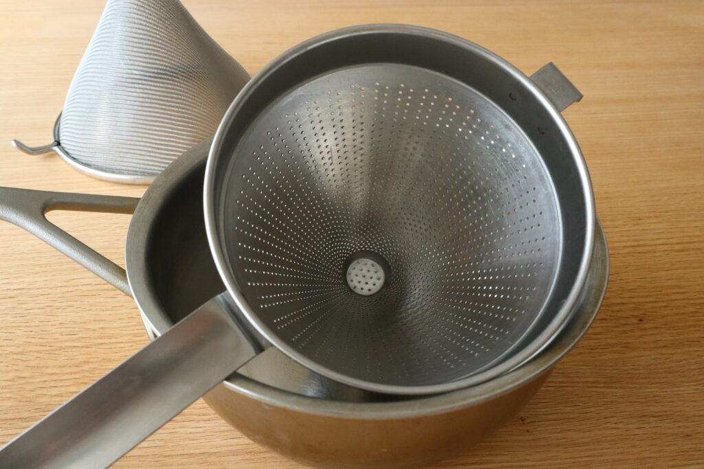 金属製の円錐形をした濾し器です。