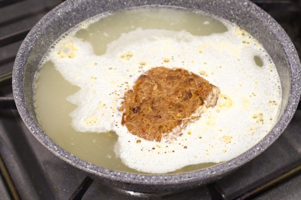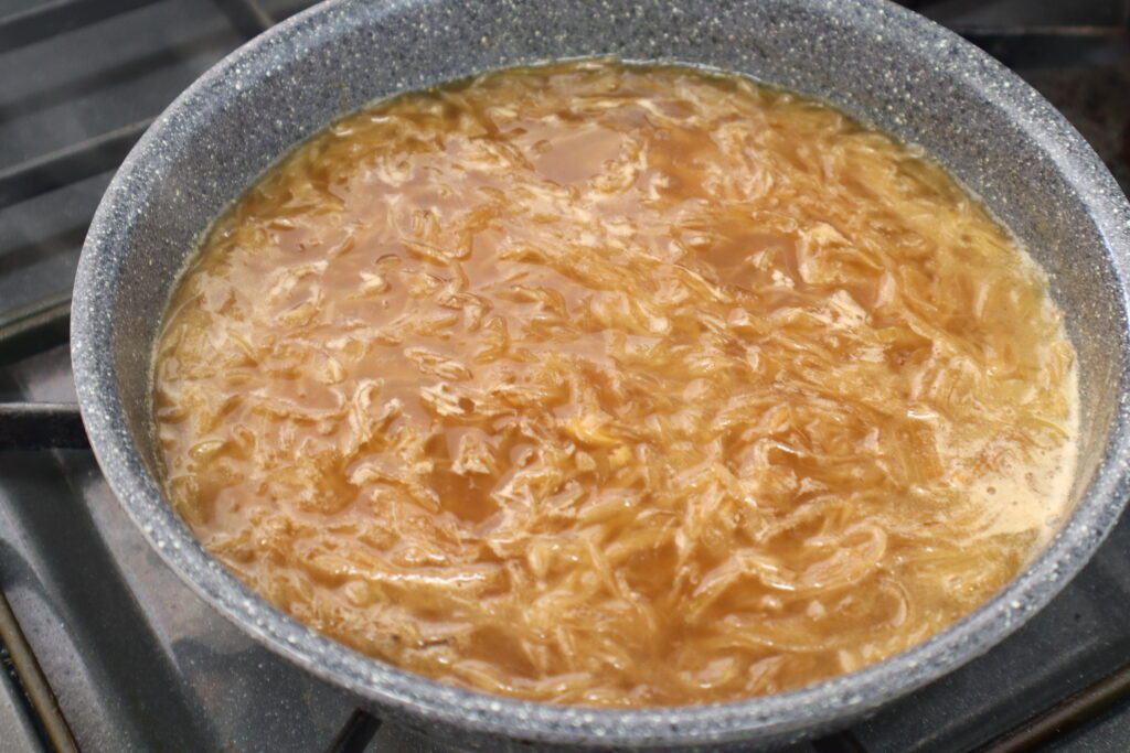 玉ねぎの旨味と甘みが出汁に移り、出汁の色がきれいな琥珀色に、
