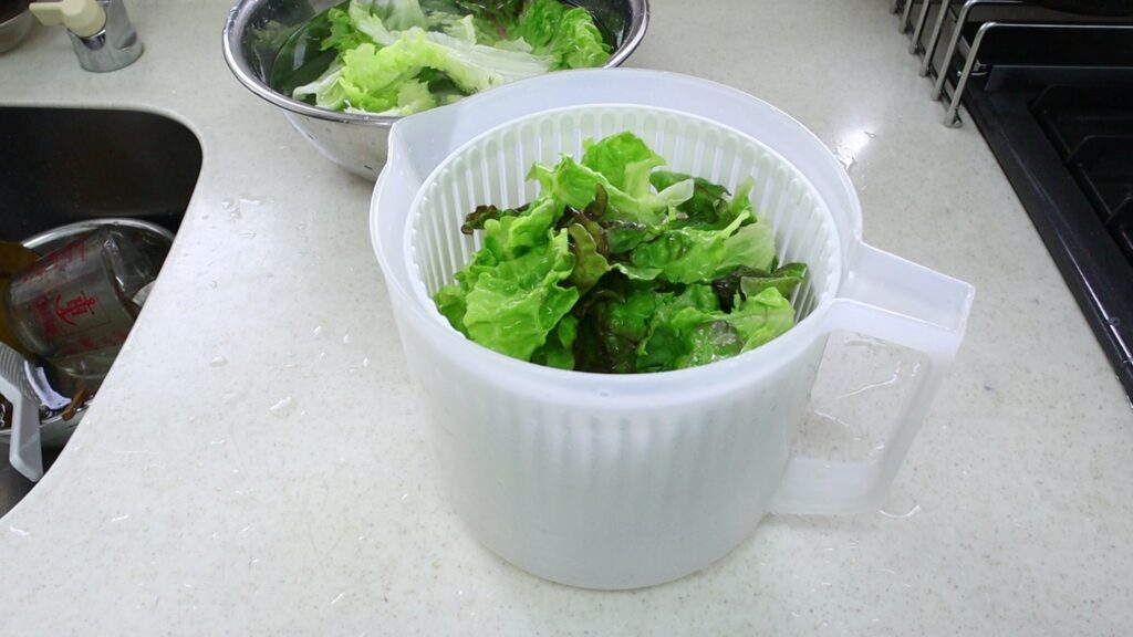 水気をしっかり取ることで傷みにくくなるのはもちろん、ドレッシングで和えたときに味が乗りやすいというメリットもあります。