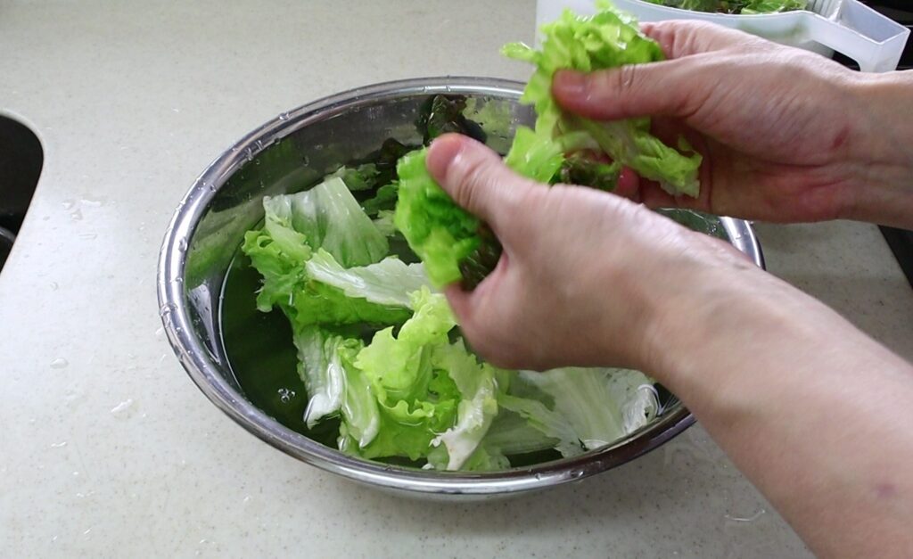 レタスなどの葉物は、包丁を使わずに「手でちぎる」ことをおすすめしています。